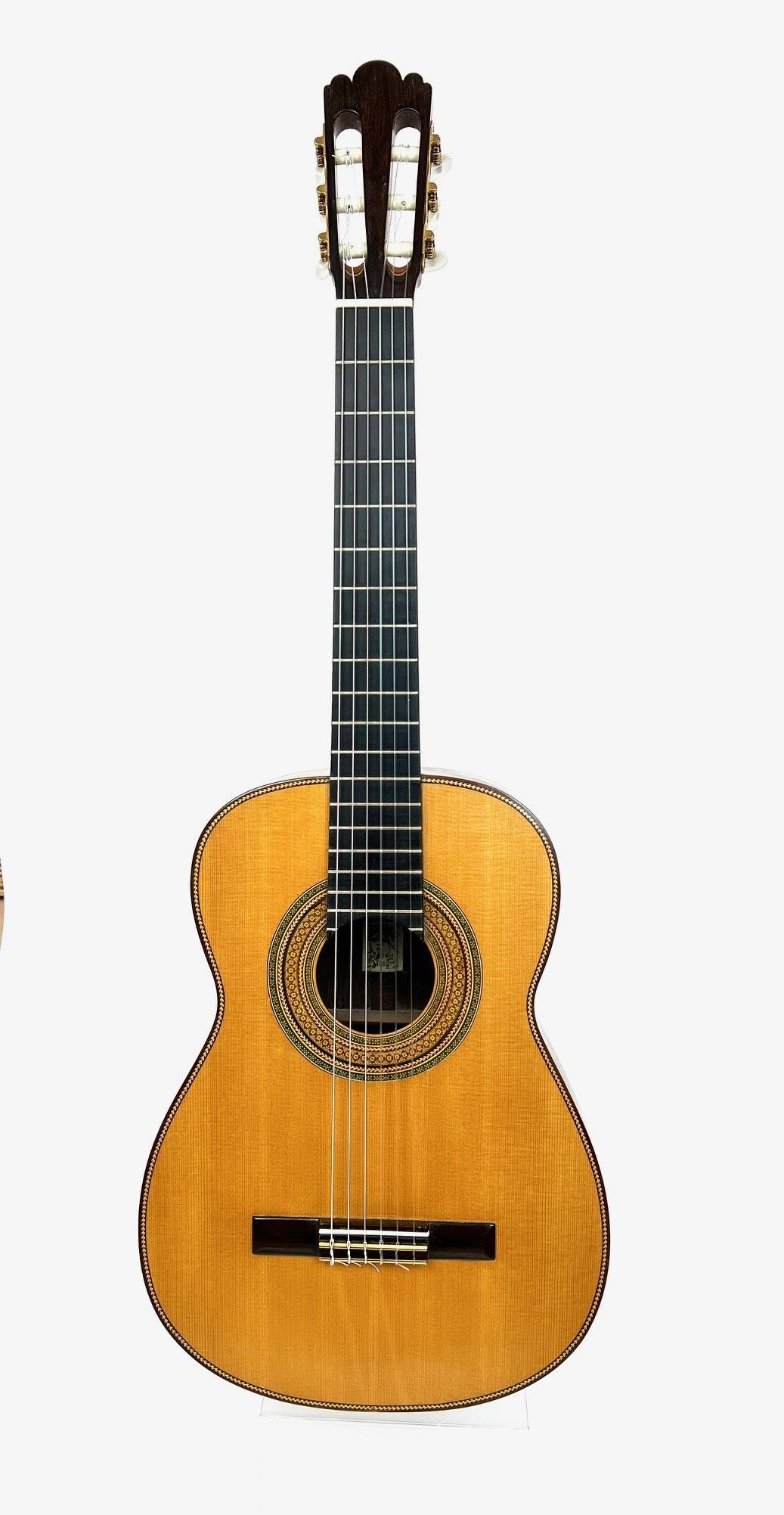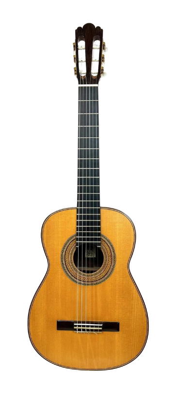 Spruce top Brazilian Rosewood back and sides, oversized dyed and constructed Rosette.