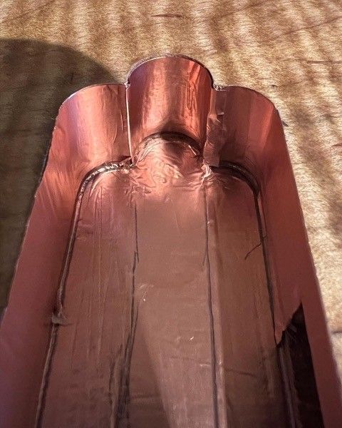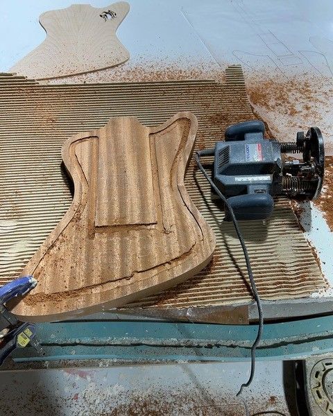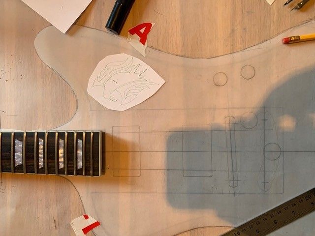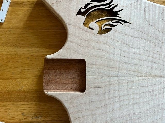 Re Claimed chambered Mahogany body with flame Maple cap. Lazer cut sound hole.